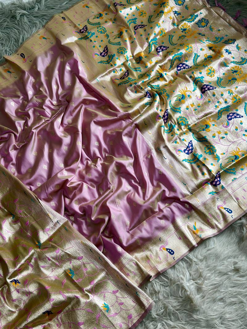 Baby pink color paithani art silk saree with blouse