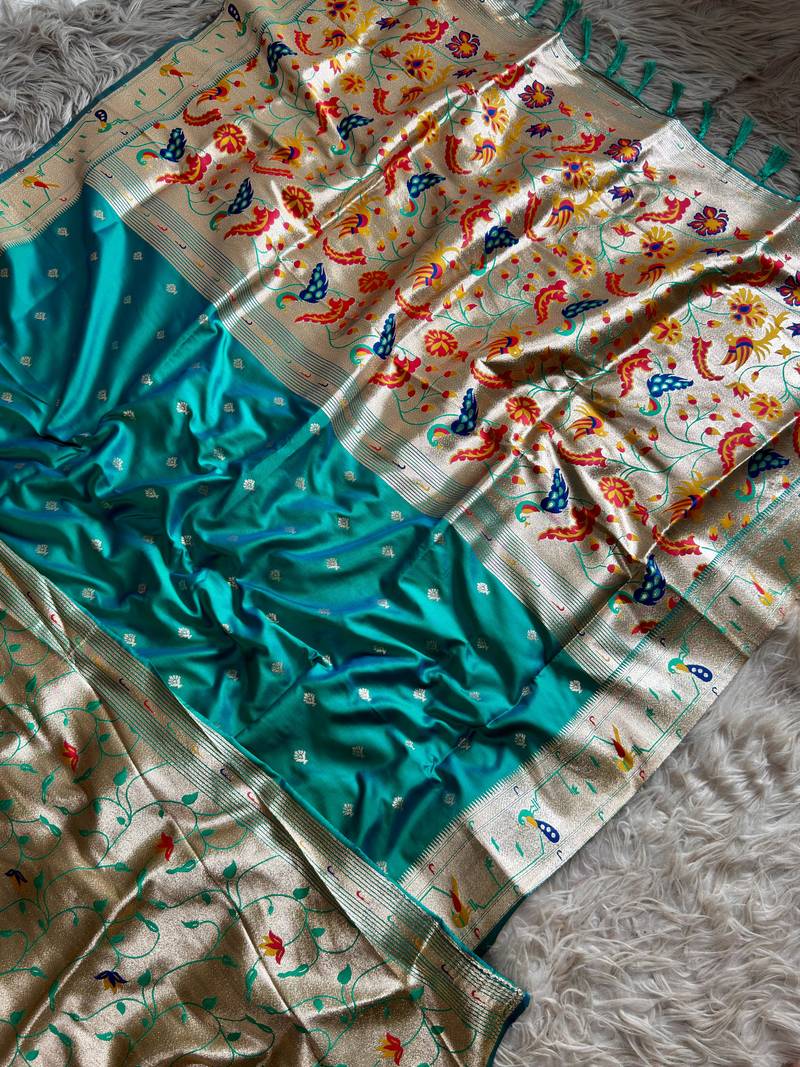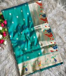 Blue pink color paithani art silk saree with blouse