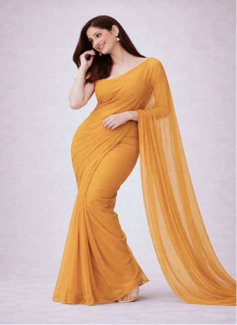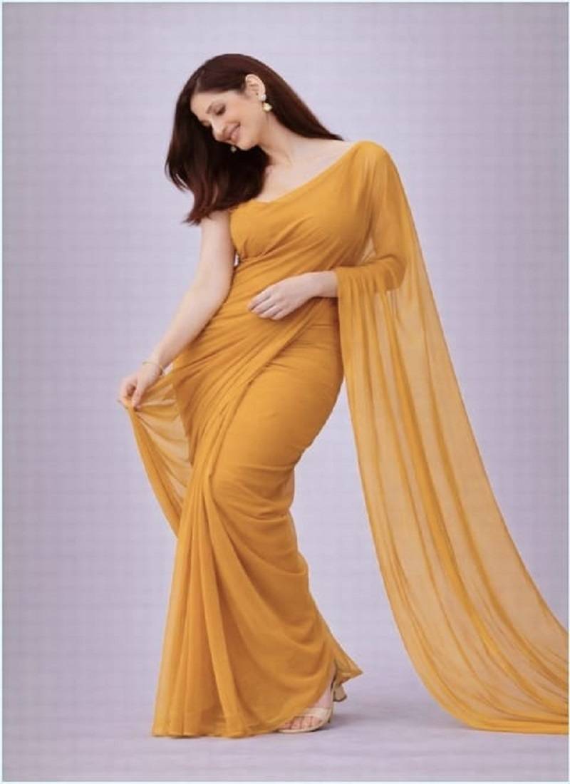 | Product Name | Mango Color Plain Georgette Designer Saree With Blouse | |