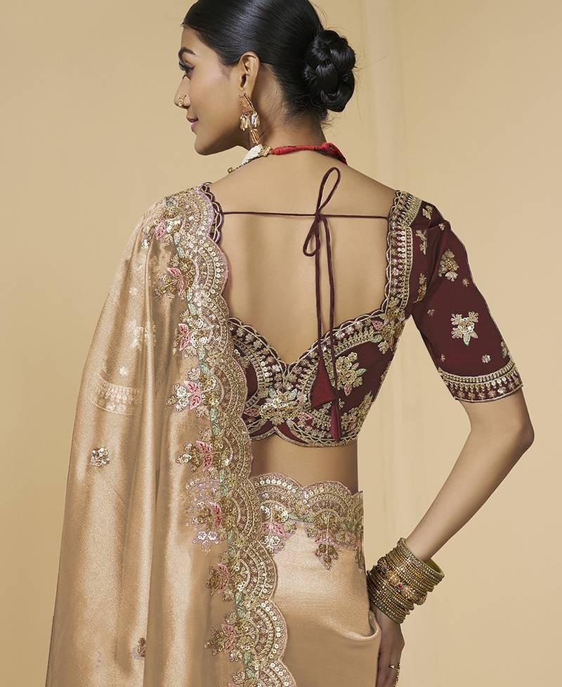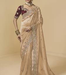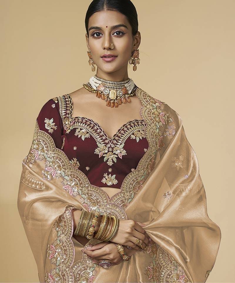 Golden embroidered tissue party wear saree with designer blouse fabric