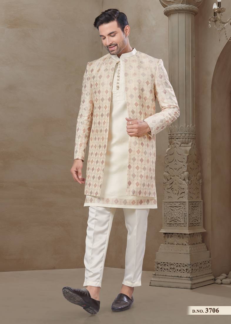 | Product Name | Cream Fancy Silk Kurta Pyjama With Jacquard Silk Modi Jacket Indo Western For Mens Wear | |