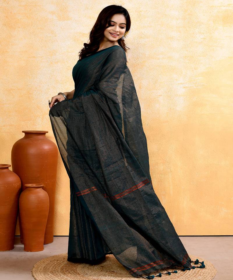 | Product Name | Moss Green Embellished Cotton Blend Zari Check Handloom Saree | |