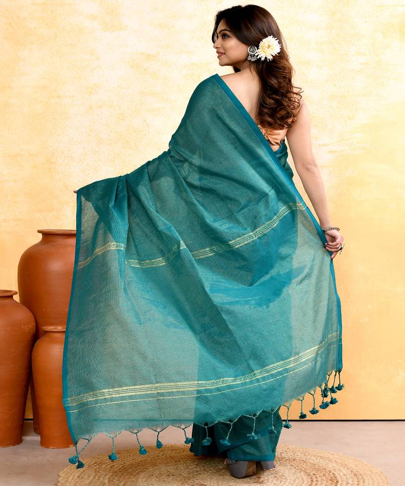 | Product Name | Teal Embellished Cotton Blend Zari Check Handloom Saree | |