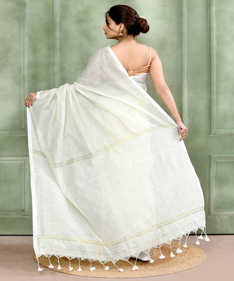 | Product Name | White Embellished Cotton Blend Zari Check Handloom Saree | |