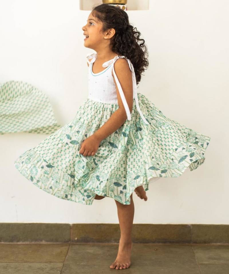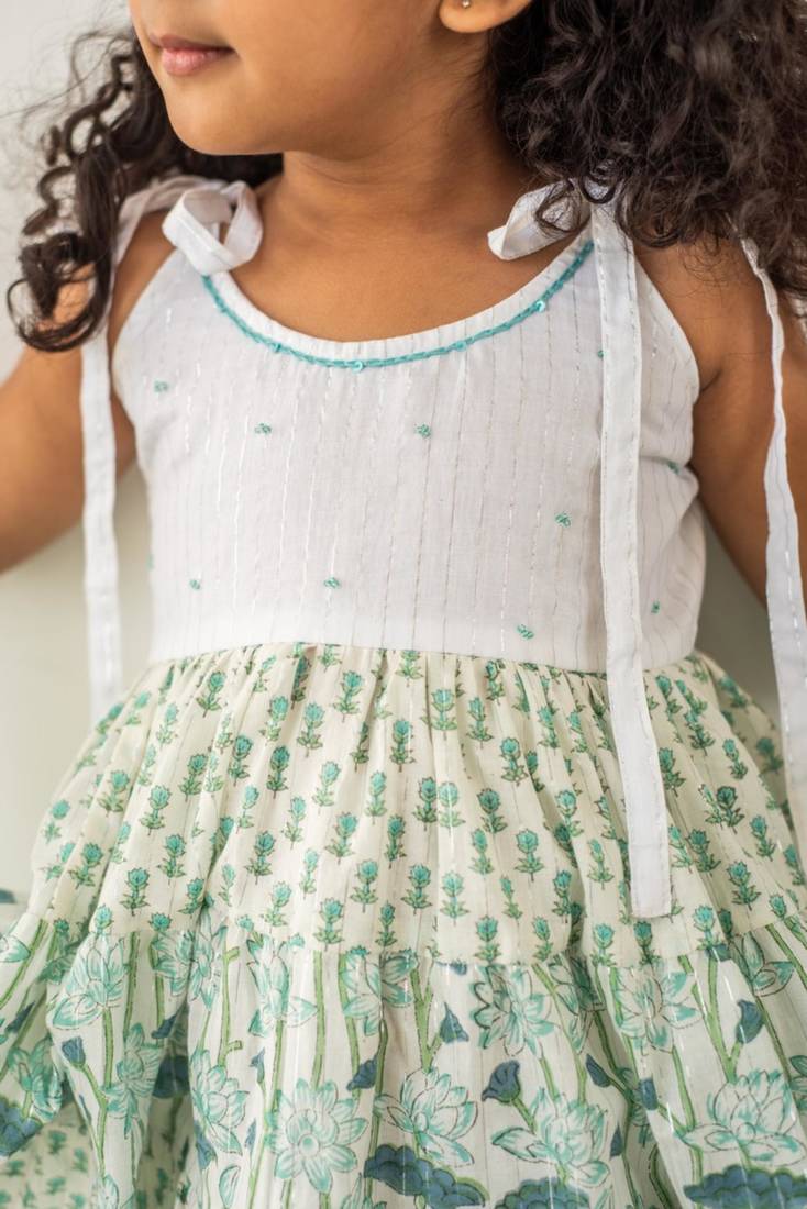 | Product Description | Introducing Our Lotus Tiered Sundress, The Perfect Addition To Your Little One's Summer Wardrobe! Featuring A Playful And Vibrant Lotus Print, This Dress Has An Easy Relaxed Fit That Allows For Maximum Comfort And Movement. The Gathered Waist And Round Neckline With Strap Tie Ups Provide The Perfect Fit And Adjustability, While The Calf Length Design Offers A Versatile And Timeless Look. Plus, This Dress Is Lined With Cotton Voile To Ensure Breathability And Comfort On Even The Hottest Days. Whether Paired With Sandals For A Casual Outing Or Dressed Up With Ballet Flats For A Special Occasion, The Lotus Tiered Sundress Is Sure To Become A Go To Favorite For Any Summer Adventure! |