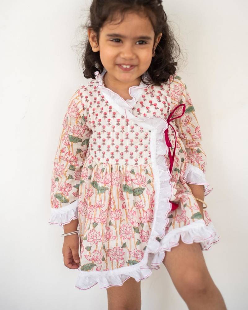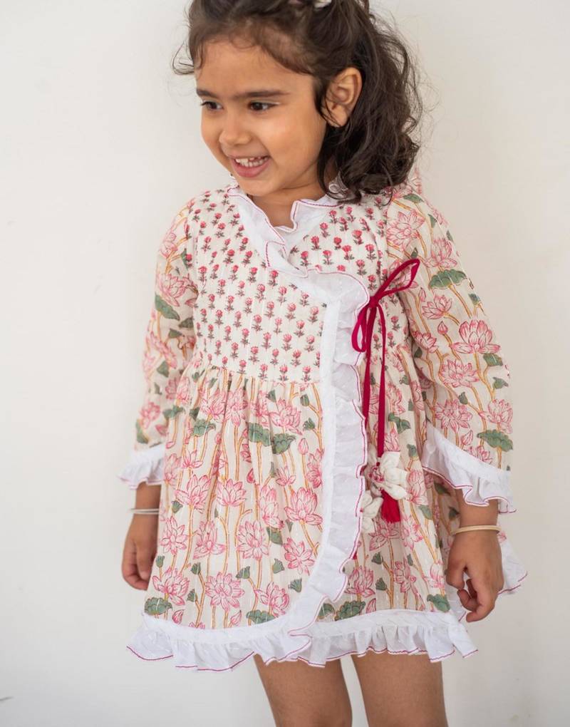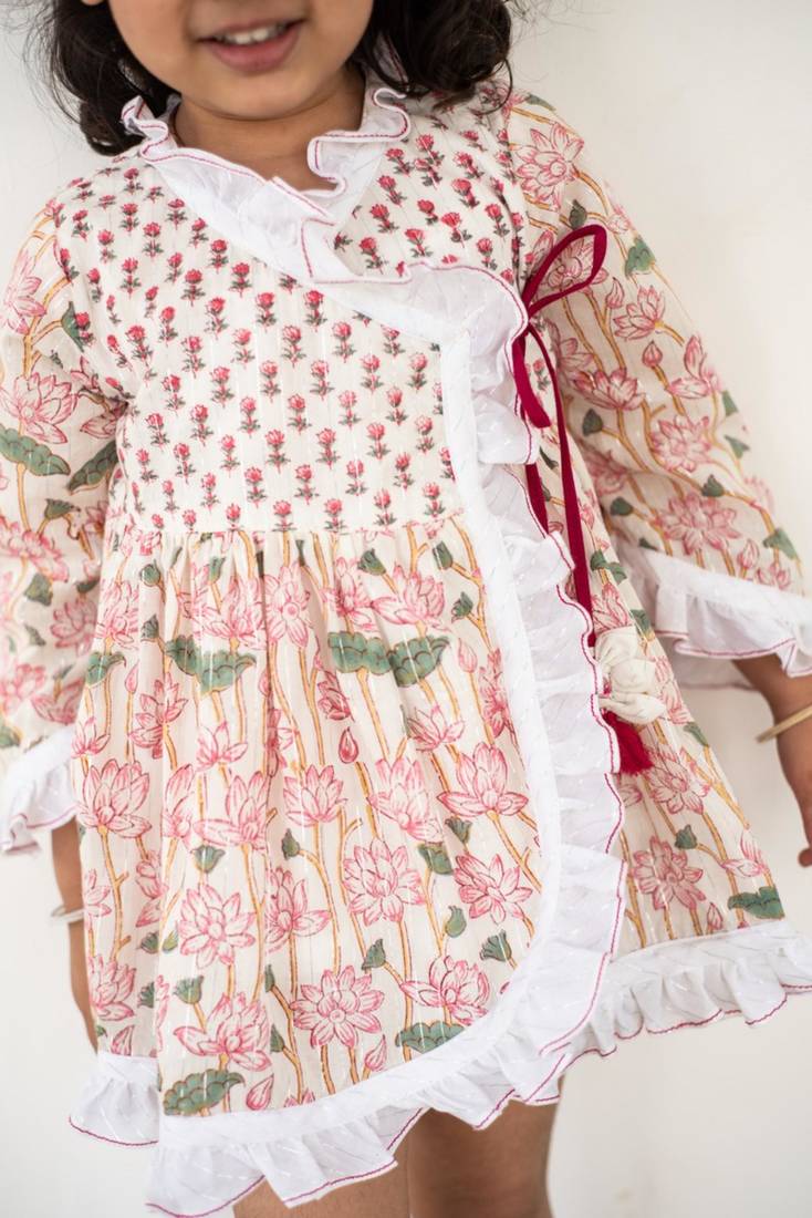 | Product Description | A Wrap Around Dress That Will Add A Touch Of Elegance And Style To Any Occasion. This Stunning Dress Features Frill Details All Over The Hemline, Neckline, And Sleeves, Adding A Charming And Feminine Touch To The Outfit. The Tassel Tie Up At The Side Adds A Playful Element, Making It Perfect For Both Formal And Casual Events. The Dress Is Designed With An Angarakha Style Wrap, Creating A Flattering And Comfortable Fit For All Body Types. |