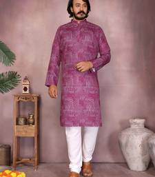 | Product Description | Elegant Magenta Geometric Printed Kurta Crafted In Soft And Breathable Cotton Blend Fabric For All Day Comfort. Features A Refined Band Collar Neck, Full Sleeves And A Straight Silhouette For A Rich Ethnic Look. Paired With A Crisp White Pyjama, Offering A Classy Contrast Ideal For Festivals And Ceremonies. Perfect For Weddings, Festive Events, Pujas, Cultural Gatherings, Office Ethnic Days And Celebrations. Created For Modern Men Who Prefer A Stylish, Comfortable And Premium Ethnic Appearance.Please Note: Minor Colour Variations Are Normal As Digital Screens And Studio Lighting Can Affect How The Shade Appears. |