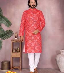 | Product Description | Blended Cotton Fabric For Soft, Breathable All Day Comfort Elegant Red Geometric Print With Subtle Sequence Accents For Festive Charm Stylish Band Collar And Straight Cut Silhouette For A Modern Ethnic Look Perfect For Festivals, Weddings, Poojas, Haldi & Family Celebrations Comes With Classic White Pyjama, Ensuring A Complete Ready To Wear Outfit Please Note: Minor Colour Variations Are Normal As Digital Screens And Studio Lighting Can Affect How The Shade Appears. |