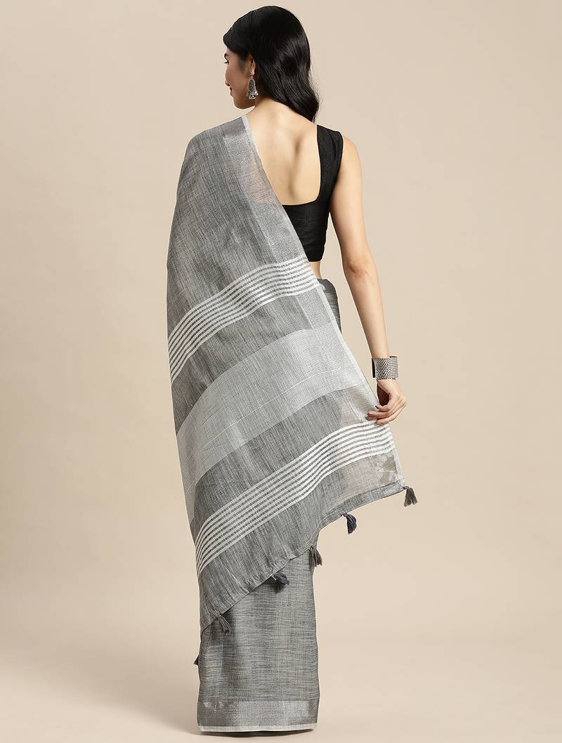 | Product Name | Dark Grey Color Solid Linen Cotton Border Saree With Blouse | |