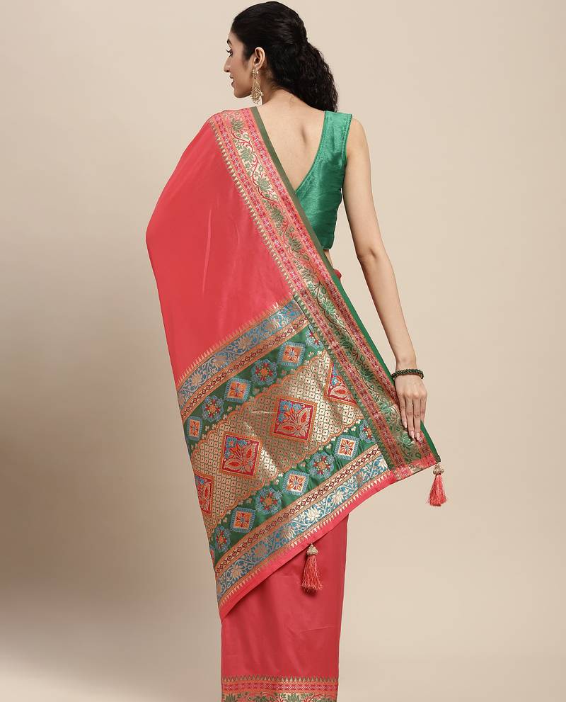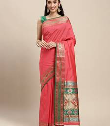 Gajari pink color zari woven art silk blend saree with un-stitch blouse
