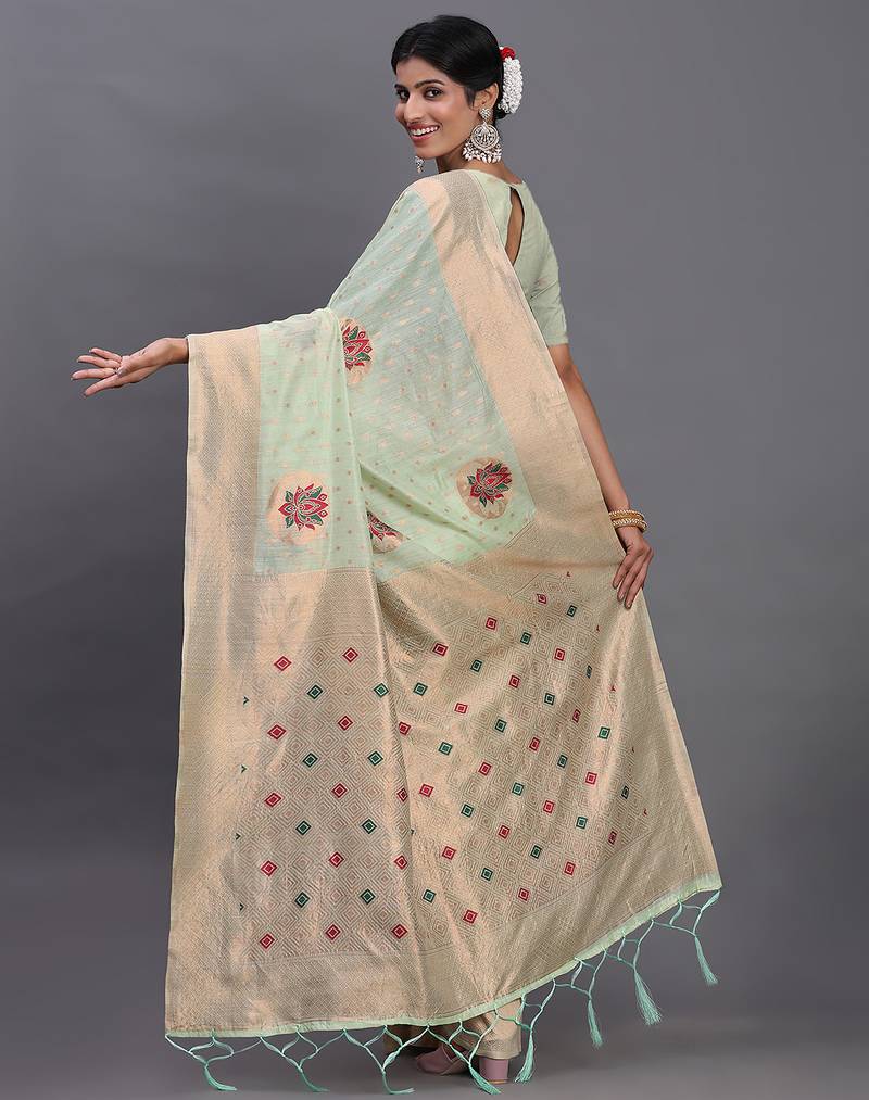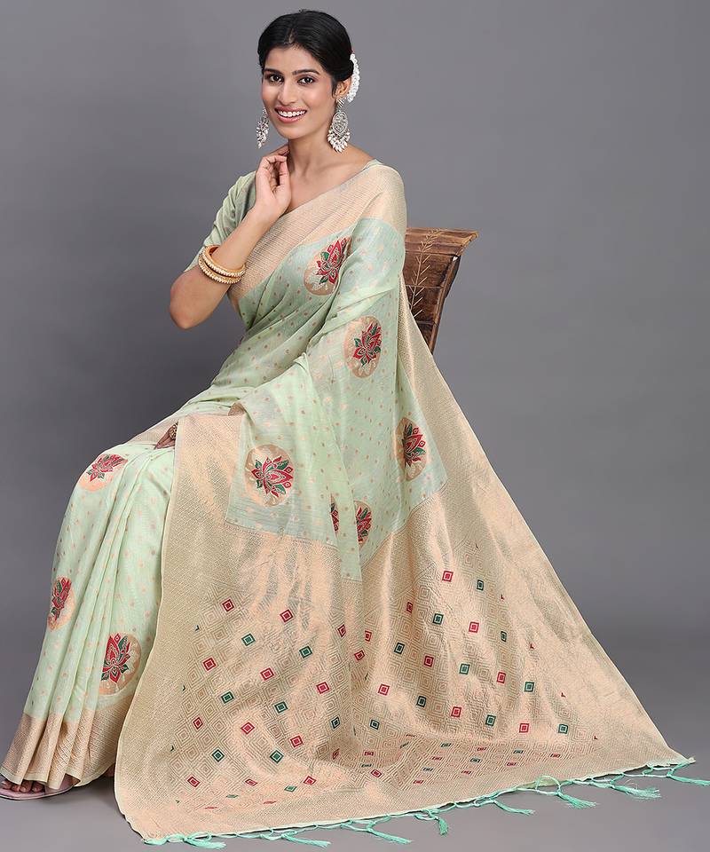 | Product Name | Light Green Color Woven Work Linen Cotton Saree | |