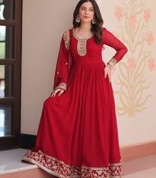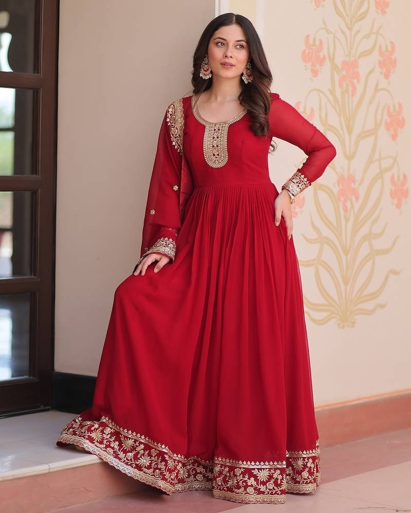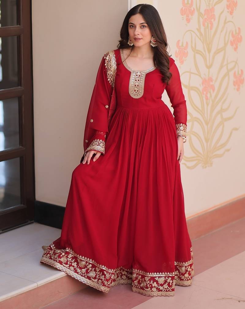Maroon color zari sequins embroidered georgette gown dupatta stitched