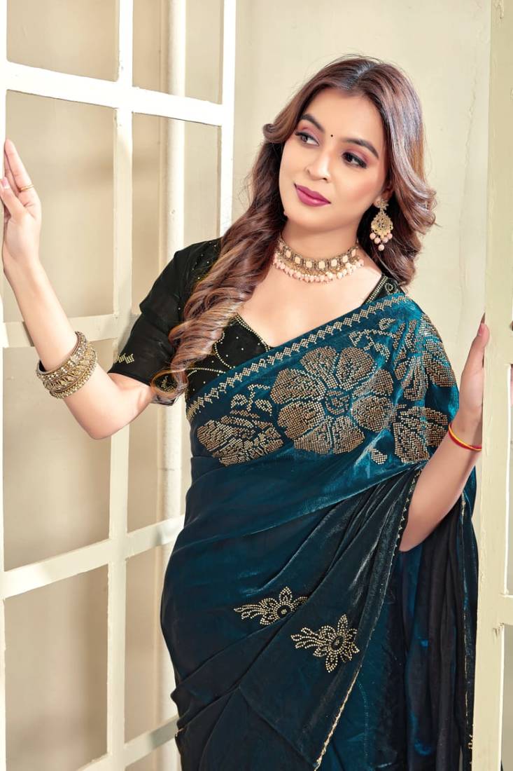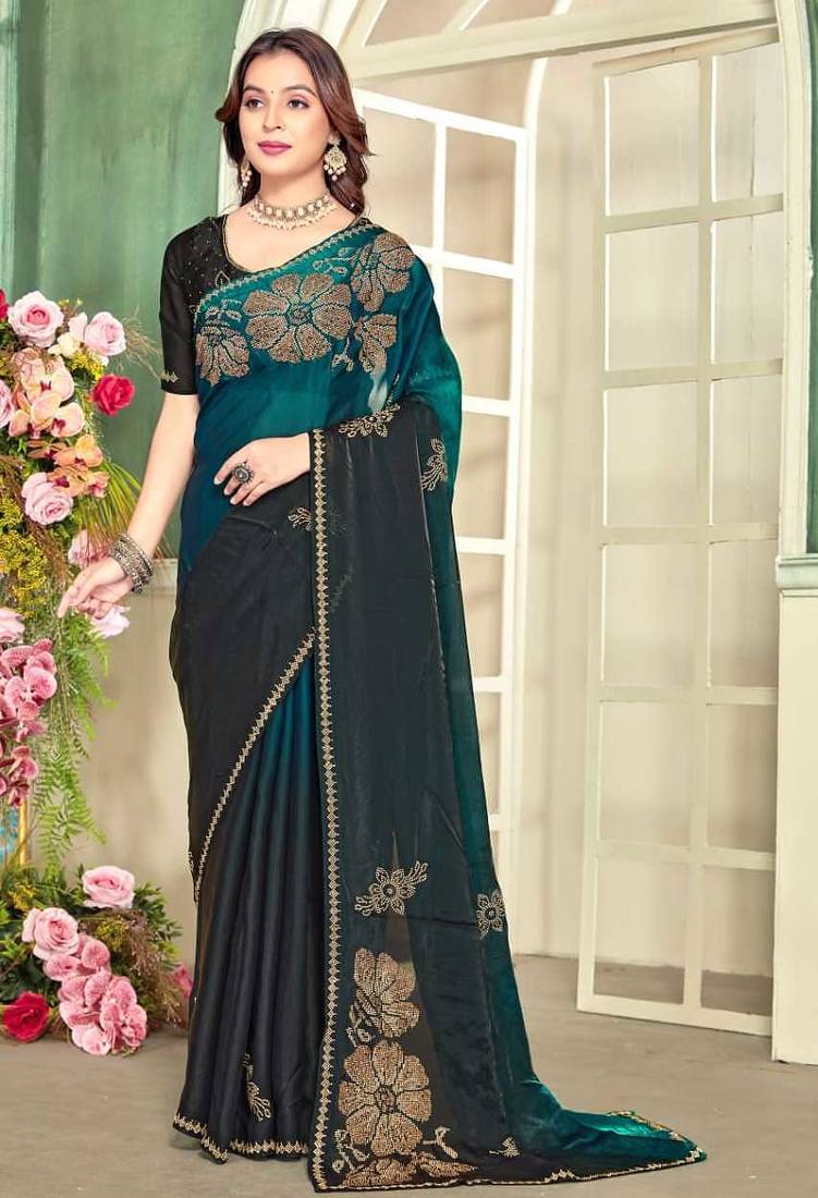 | Product Name | Morpeach Color Handwork Zircon Work Fendi Satin Two Tone Saree | |