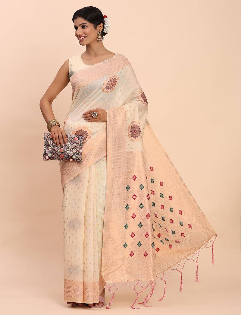| Product Name | Off White Color Woven Work Linen Cotton Saree | |