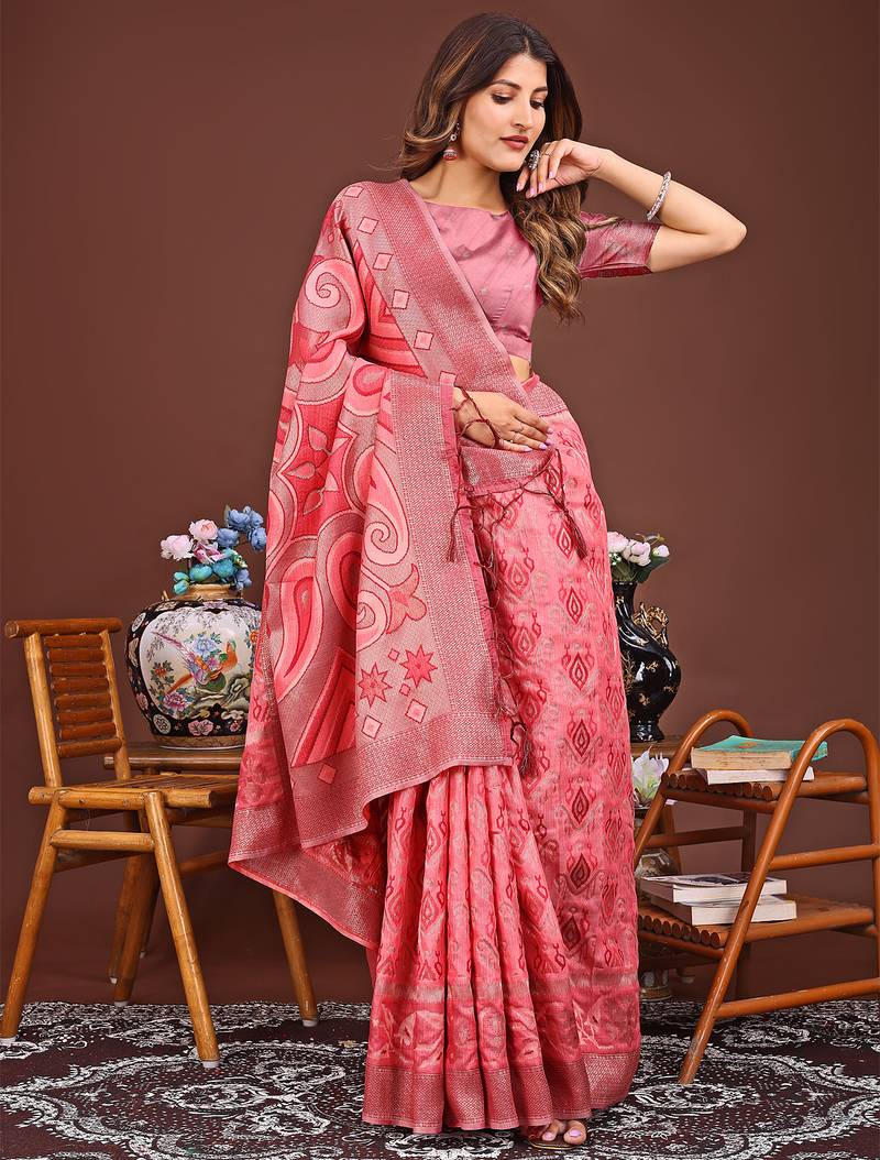 | Product Description | Linen Cotton Zari Weaving Work Saree Women's Beautiful Saree With Blouse Piece |