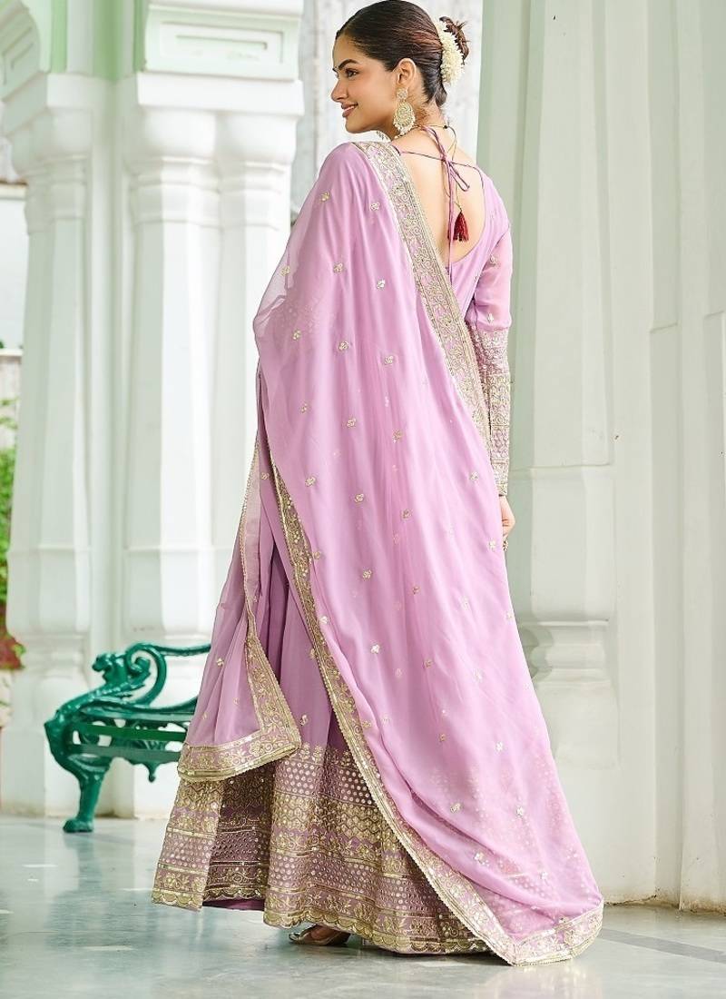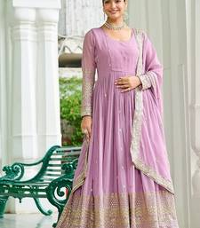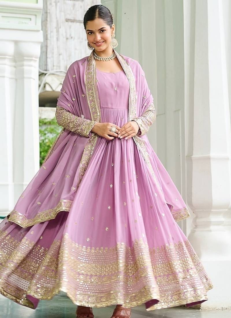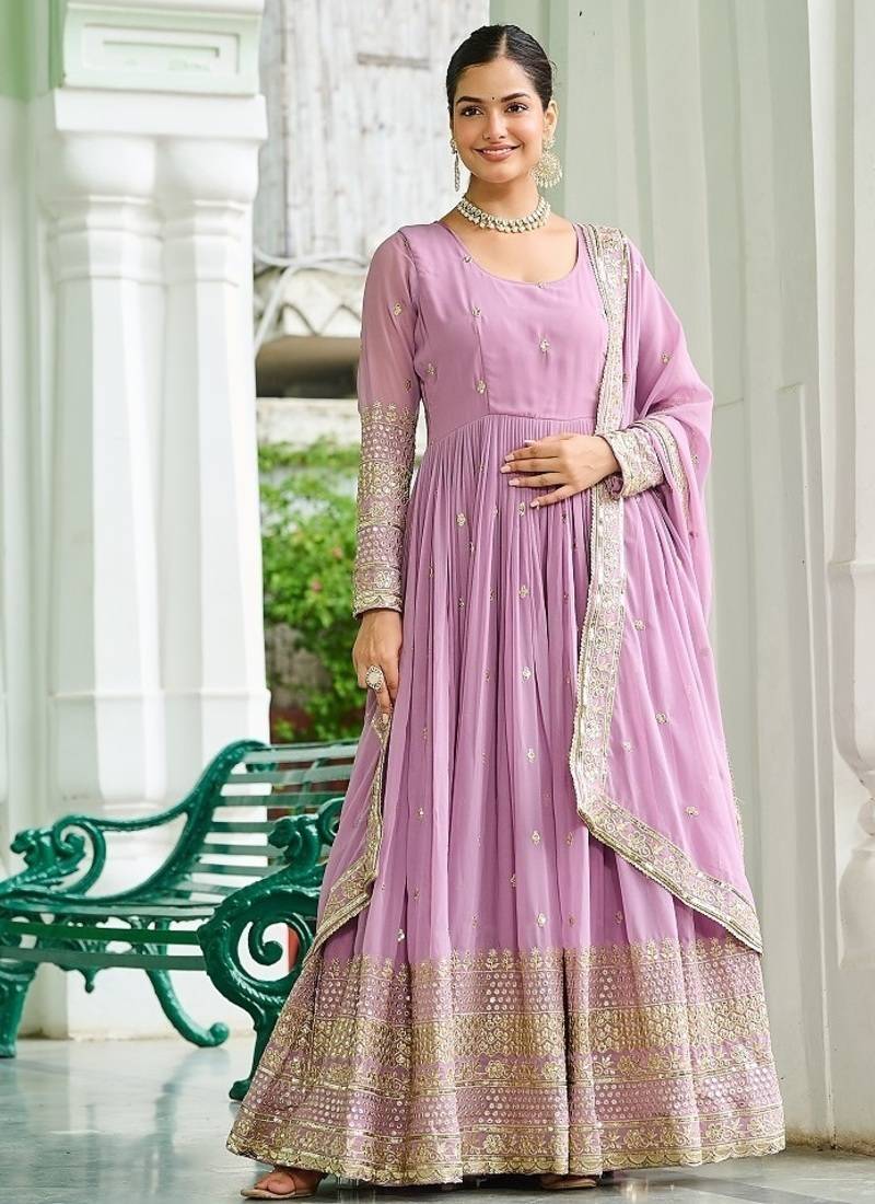 Pink color embroidered work georgette gown with dupatta stitched