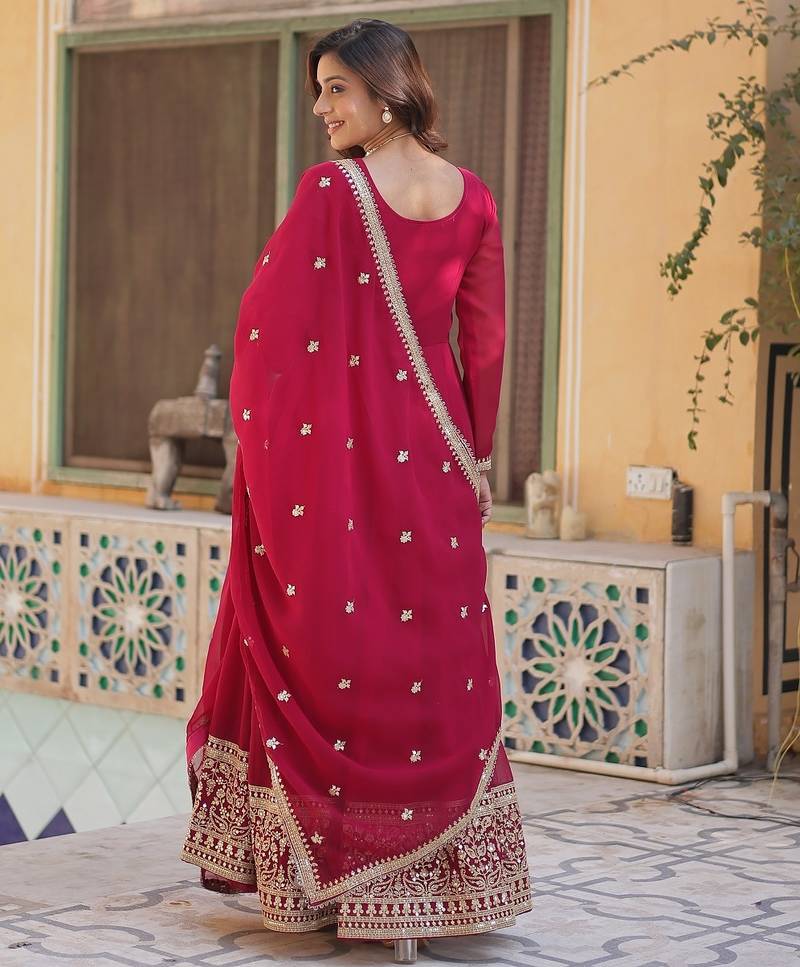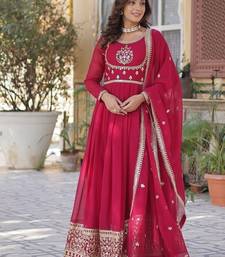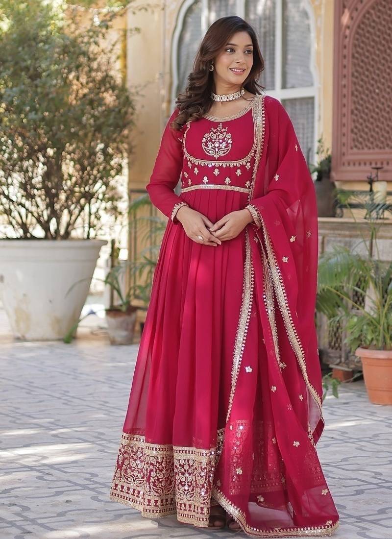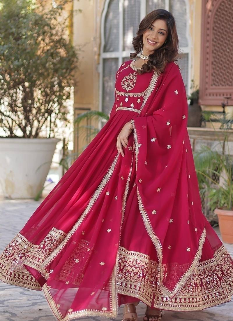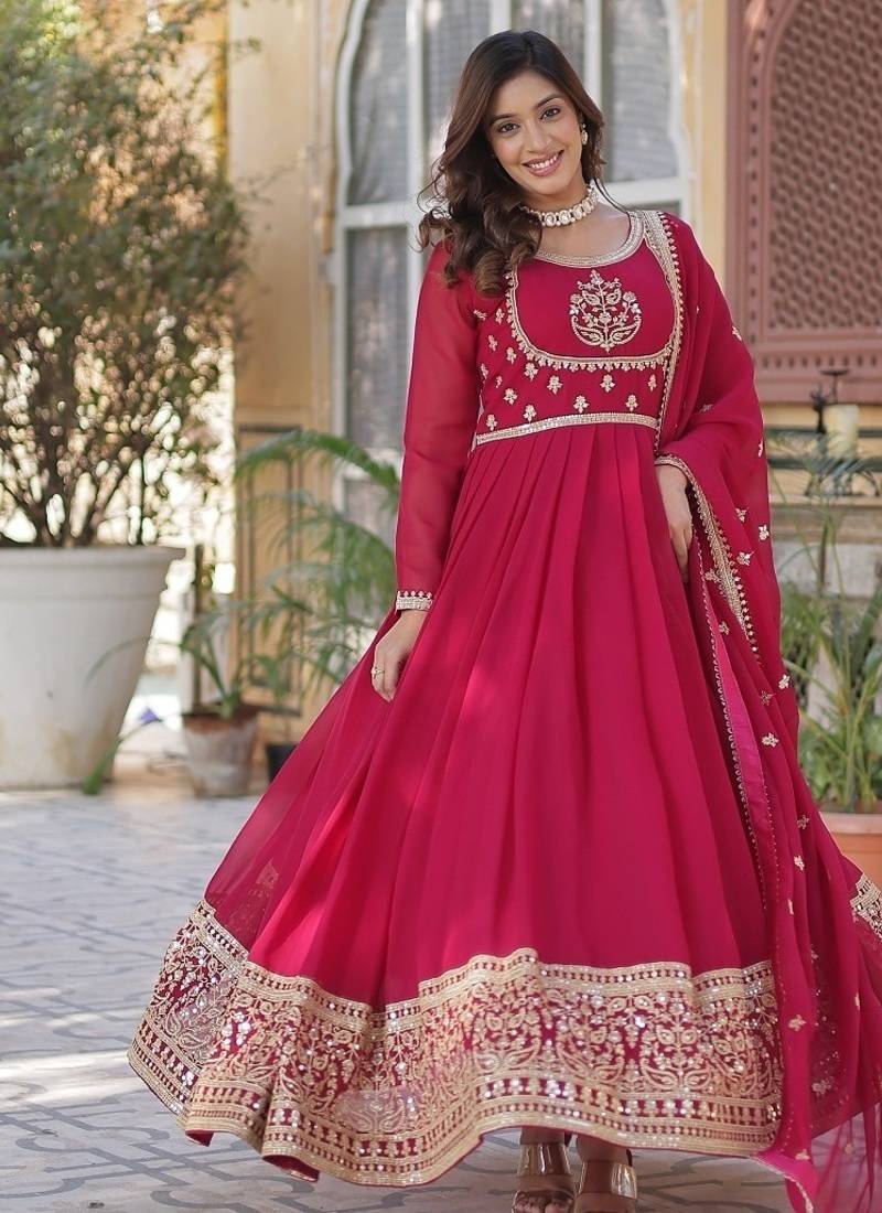 Pink color sequins embroidered work georgette gown with dupatta stitched