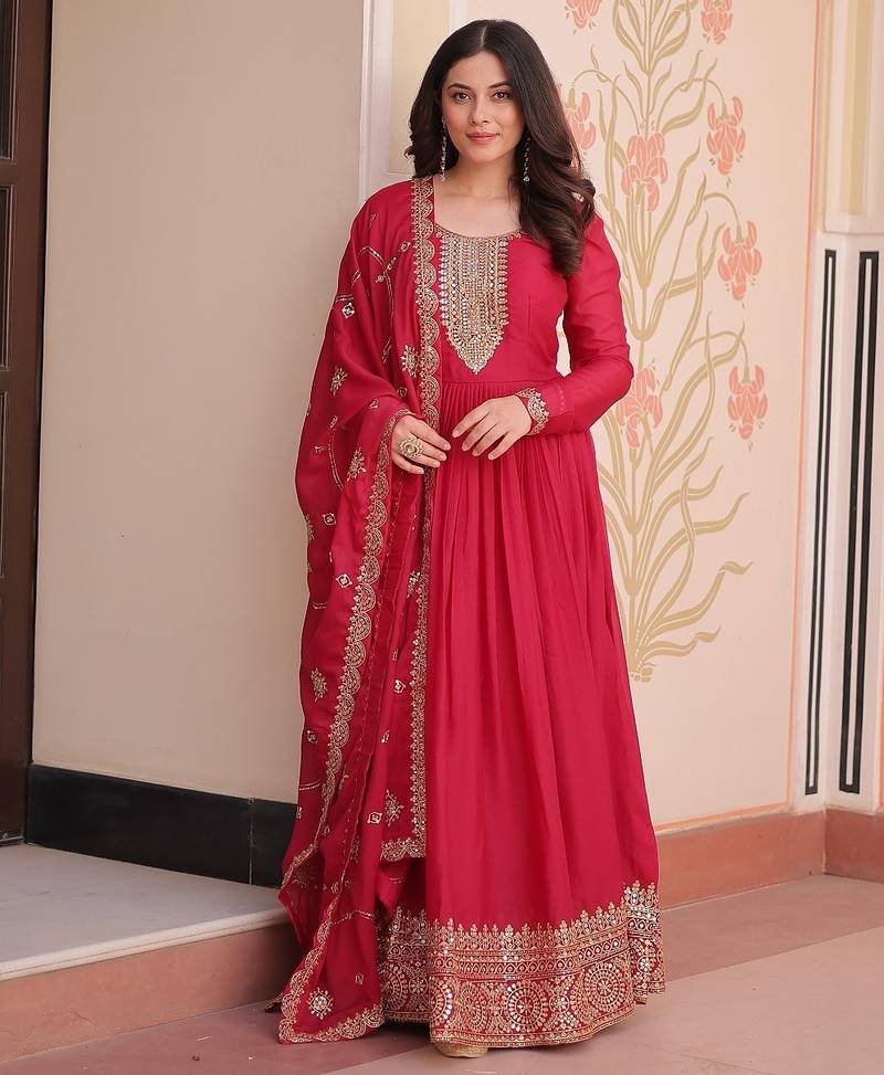 | Product Name | Pink Color Zari Sequins Embroidered Work Georgette Gown | |