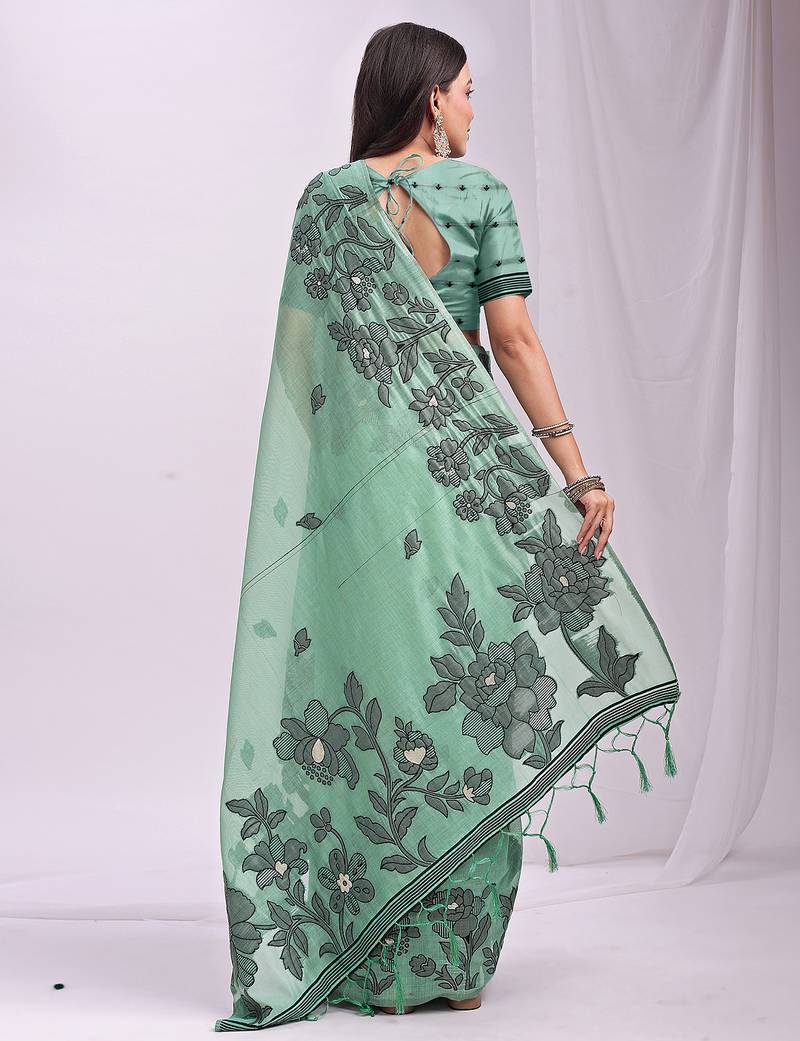| Product Name | Rama Green Color Embroidred Linen Cotton Saree | |