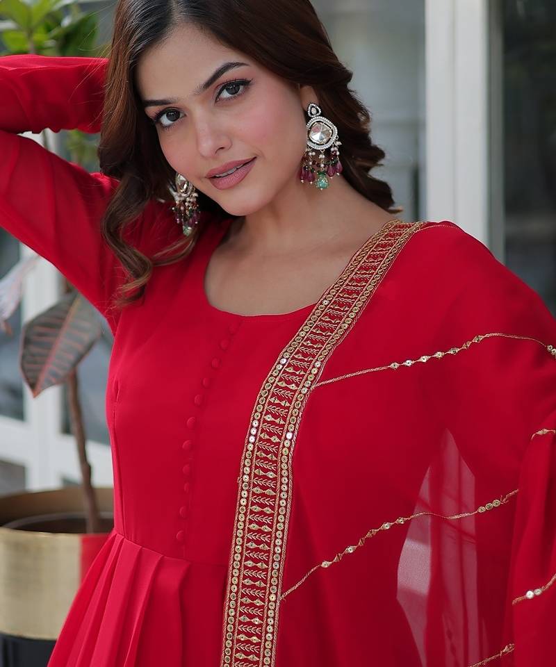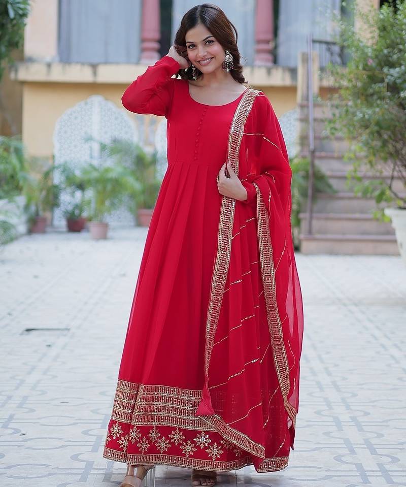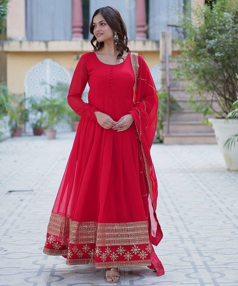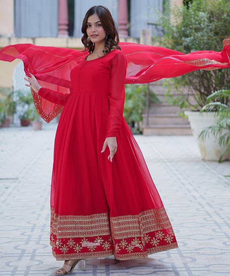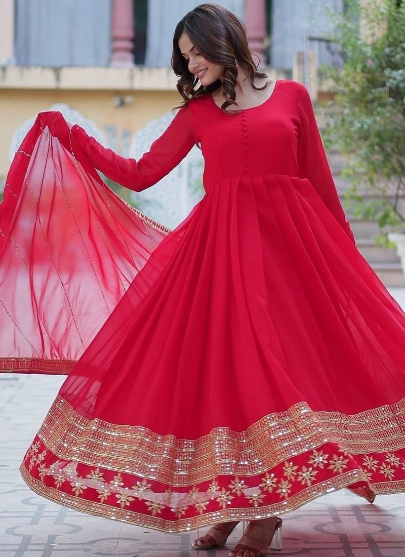 | Product Name | Red Color Multi Sequins Embroidered Work Georgette Gown With Dupatta | |