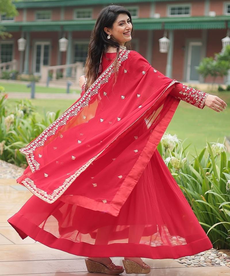| • | Dupatta | : | Color- Red / Fabric- Faux Georgette |