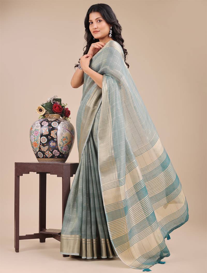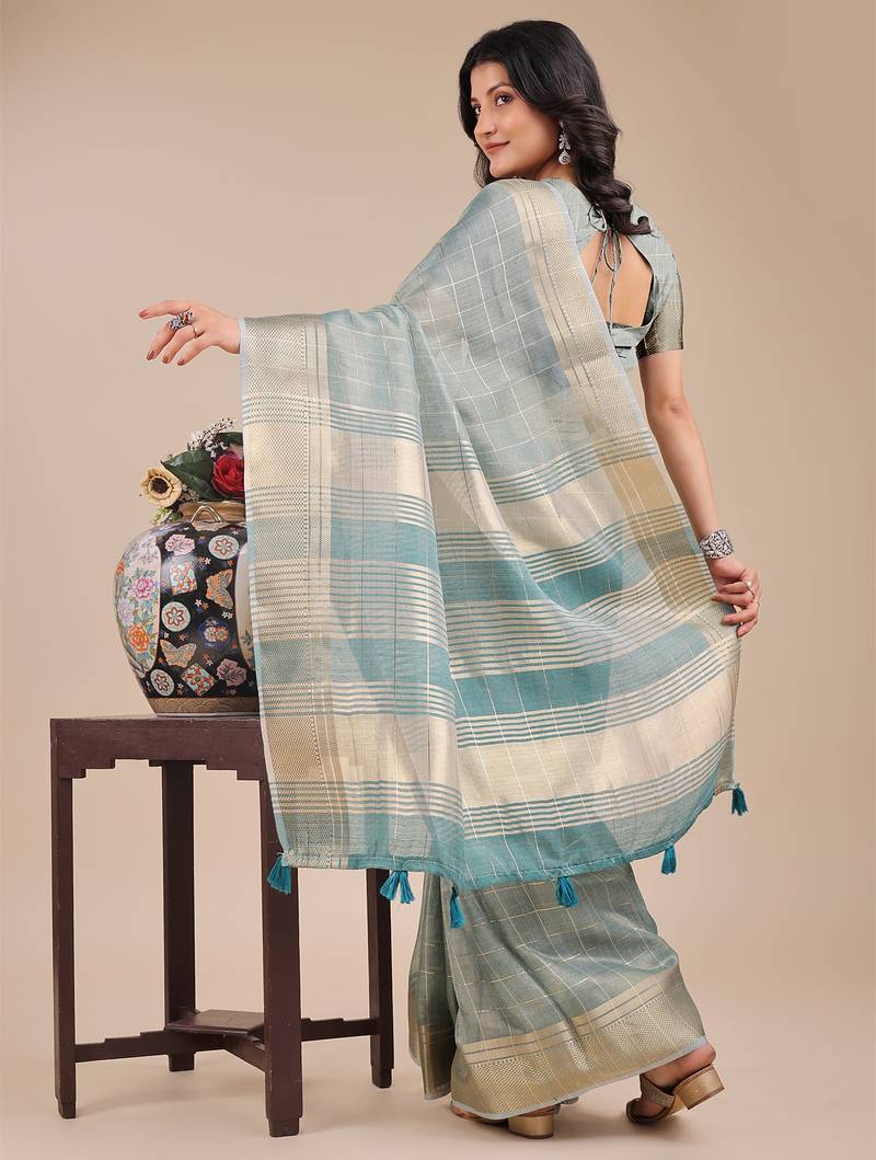 | Product Name | Sea Green Color Solid Orgenza Zari Border Saree | |