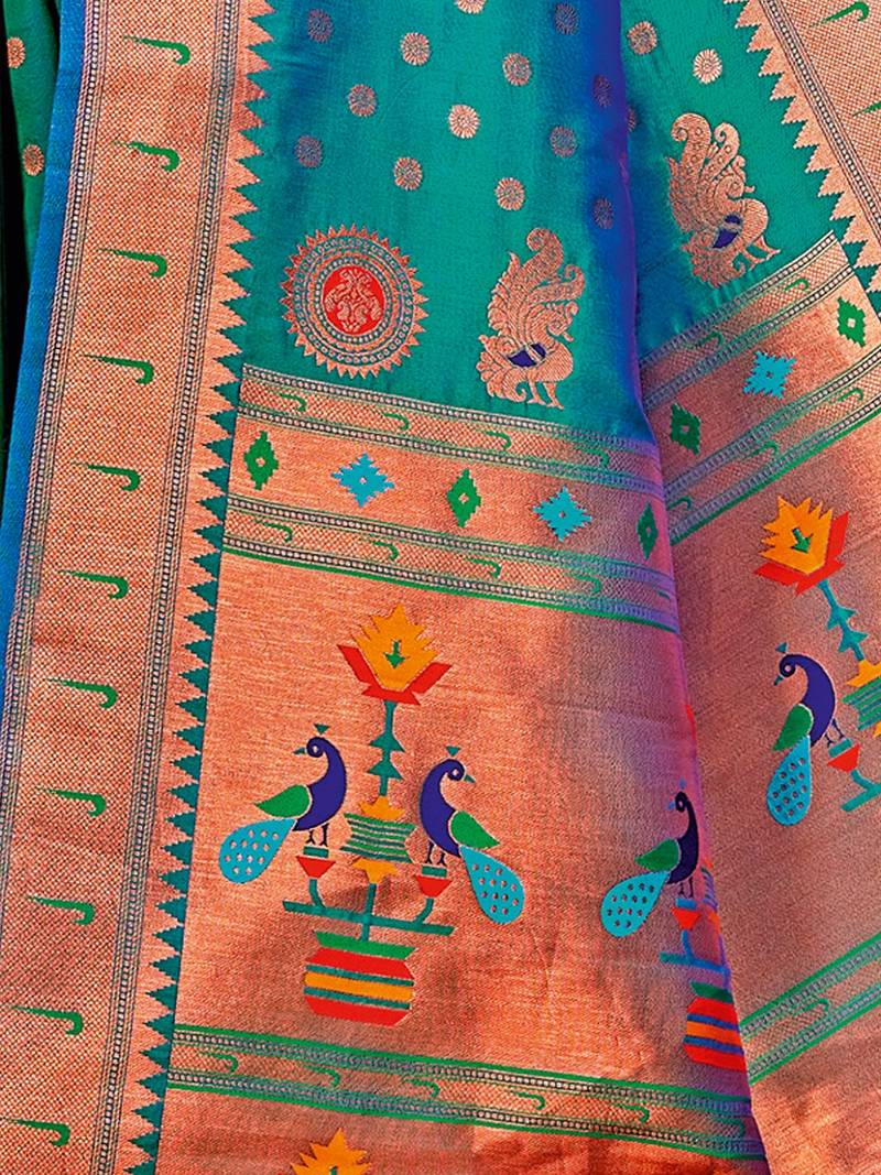 Sea green color woven work paithani art silk saree