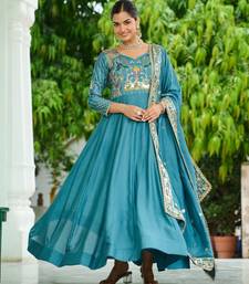 | Product Name | Sky Blue Color Threads Sequins Embroidered Work Vichitra Silk Gown Dupatta | |