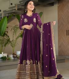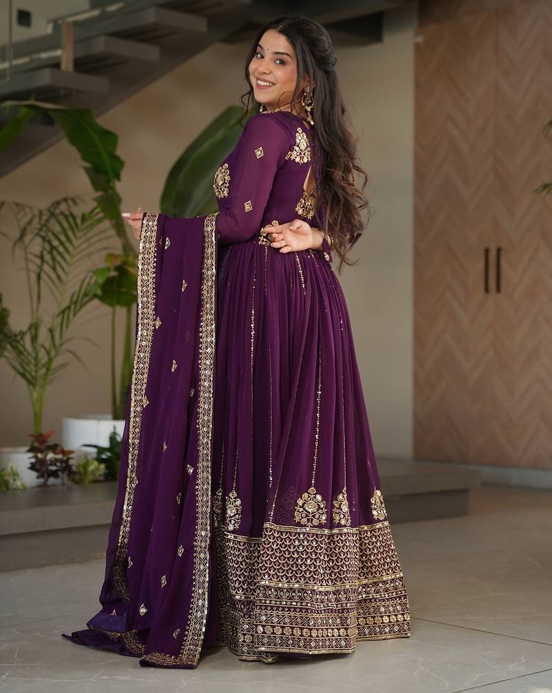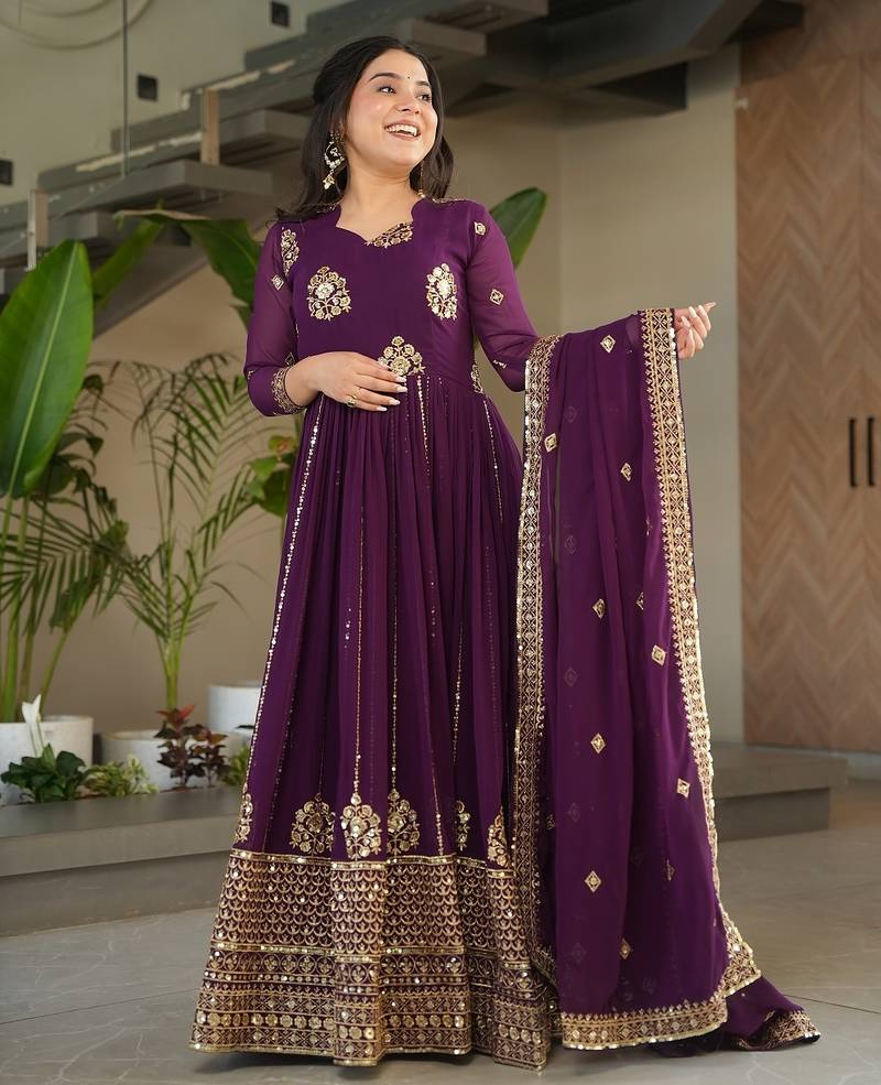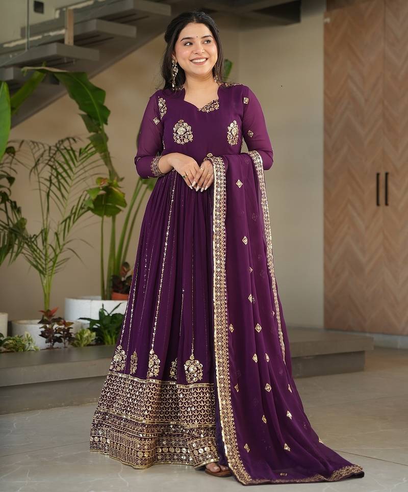 Wine color zari sequins embroidered georgette gown dupatta stitched