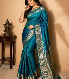 Teal color designer paithani silk saree
