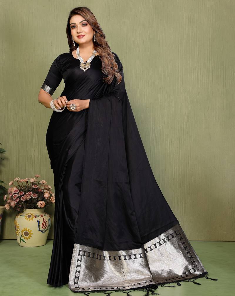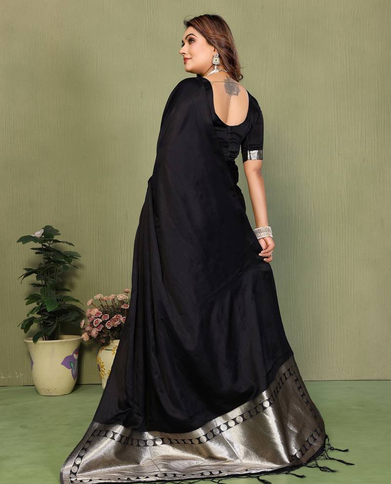 | Product Name | Black Color Hand Dyed With Zari Woven Satin Silk Saree | |