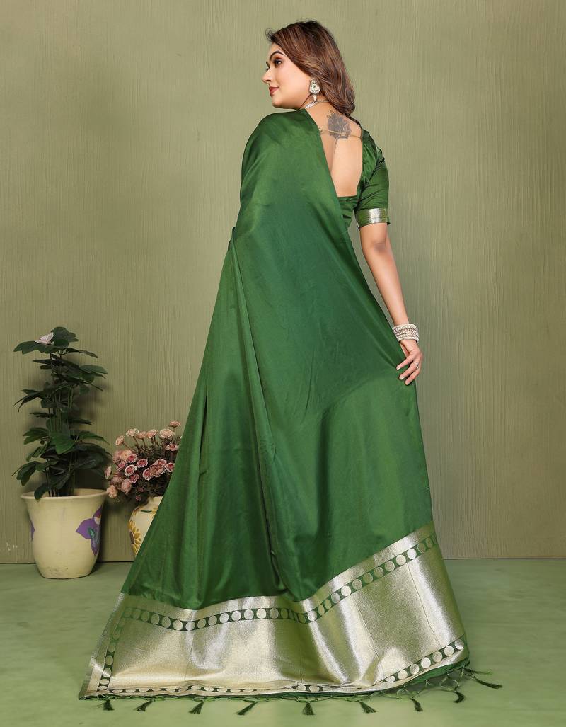 Mehendi green color hand dyed with zari woven satin silk saree