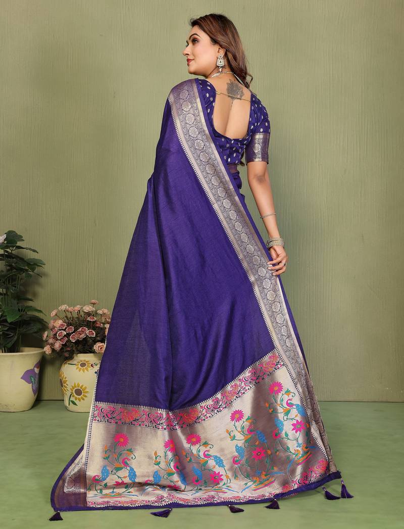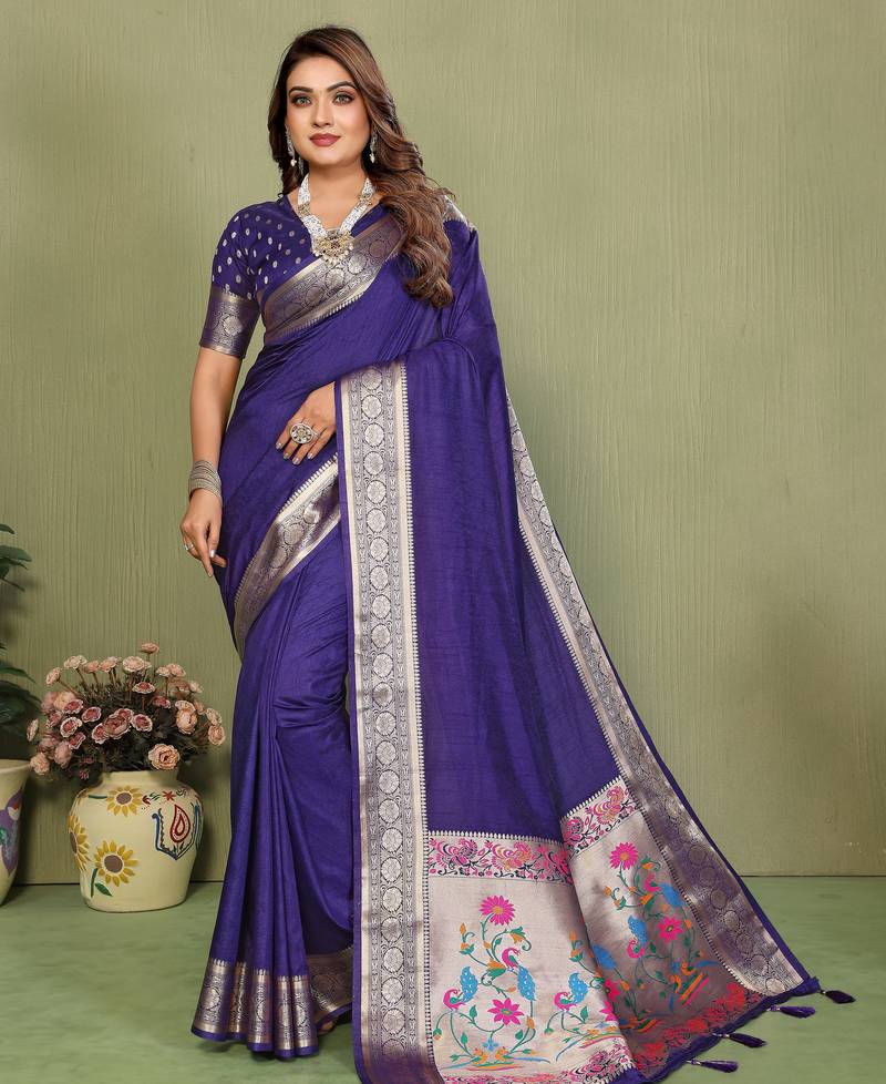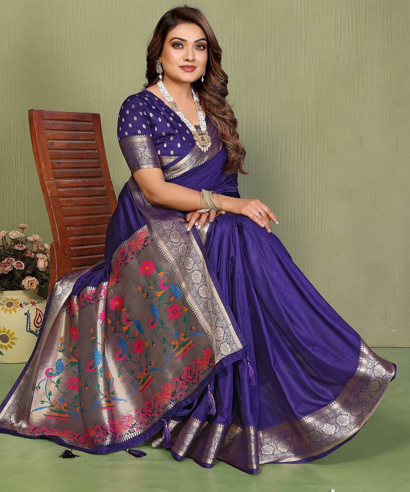 | Product Name | Purple Color Zari Gold & Weaving Paithani Silk Saree | |