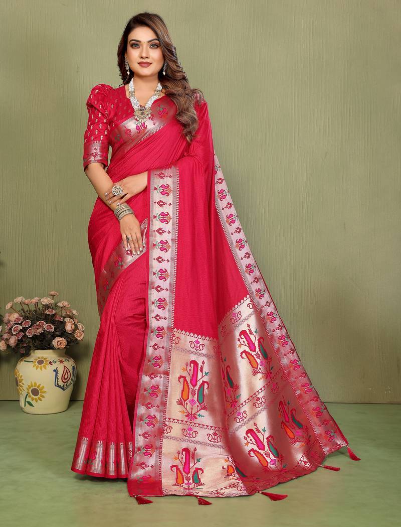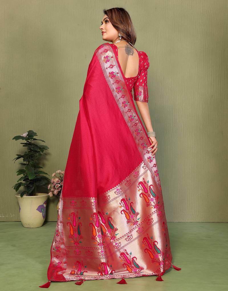 | Product Name | Rani Pink Color Zari Gold & Weaving Paithani Silk Saree | |
