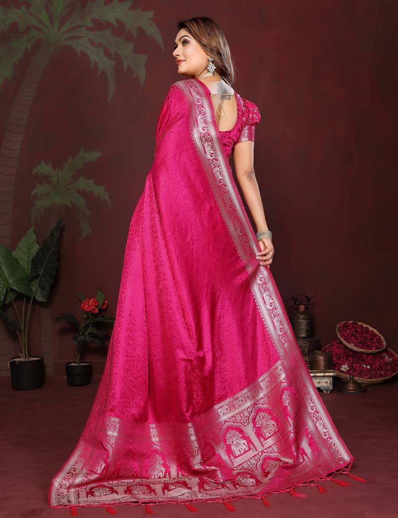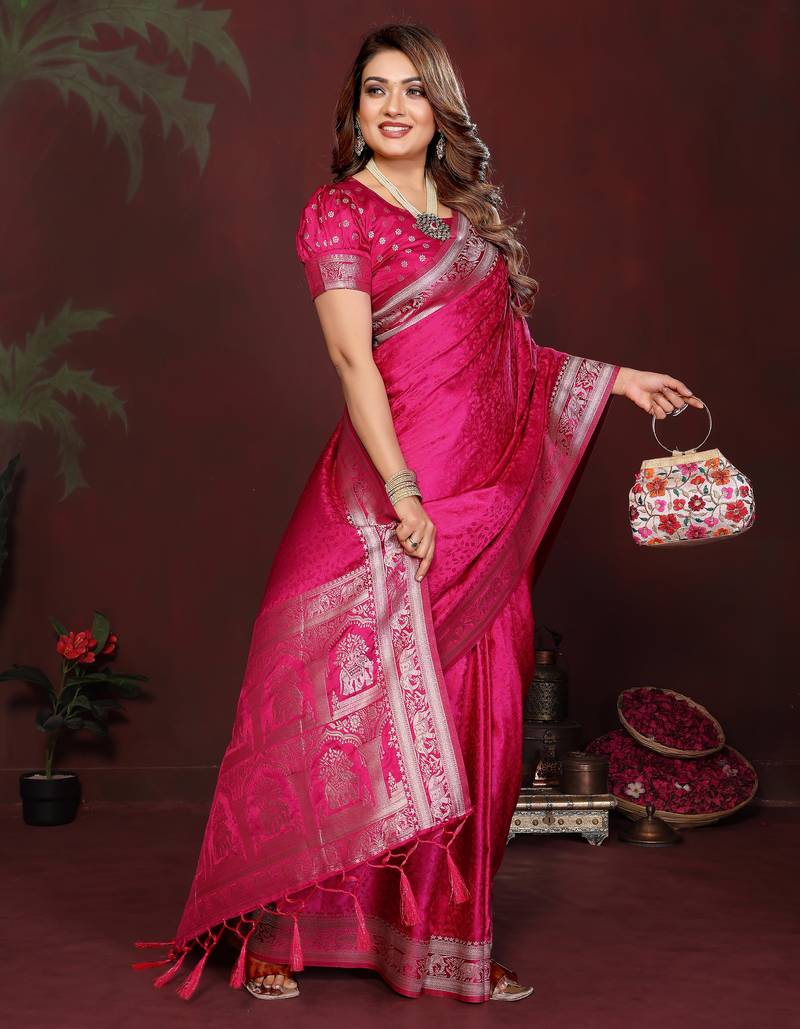 Rani pink color zari woven with hand dyed satin silk saree