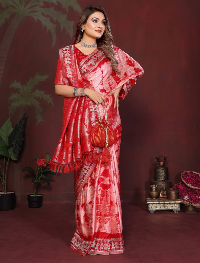 | Product Name | Red Color With Zari Weaving Sibory Soft Satin Silk Saree | |