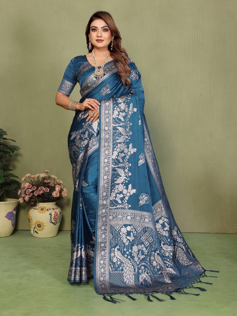 | Product Name | Teal Color Handloom Zari Woven Satin Silk Sarees | |