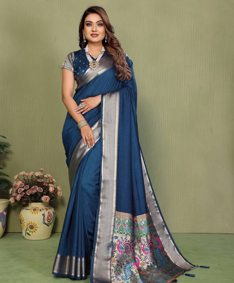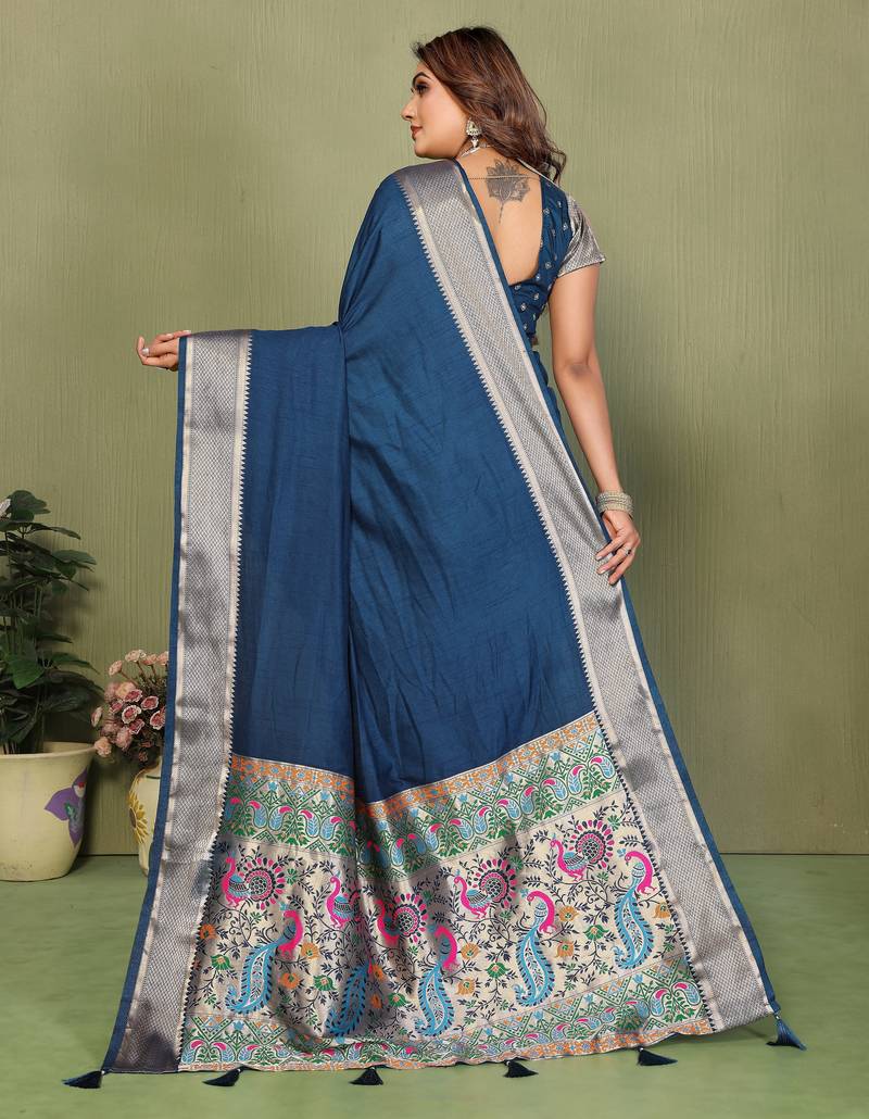| Product Name | Teal Color Zari Gold & Weaving Paithani Silk Saree | |