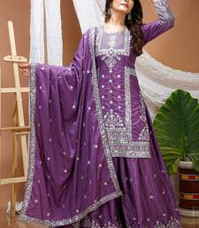 Lavender crepe silk sequence embroidered sharara suit stitched