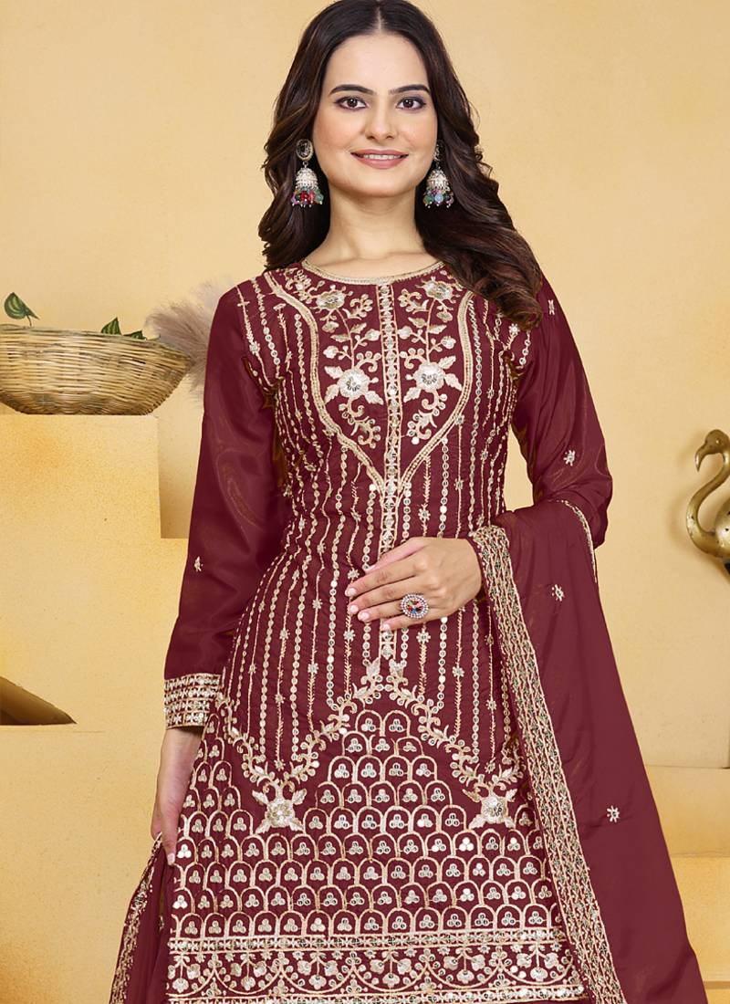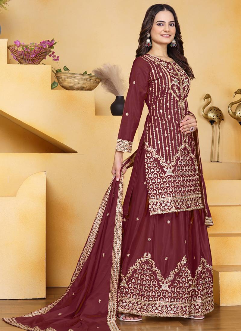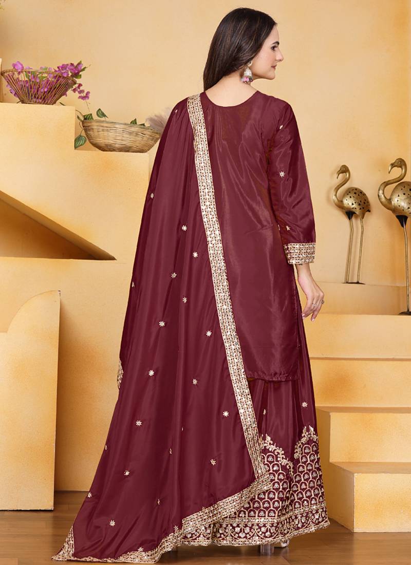 | Product Name | Maroon Crepe Silk Sequence Embroidered Sharara Suit | |
