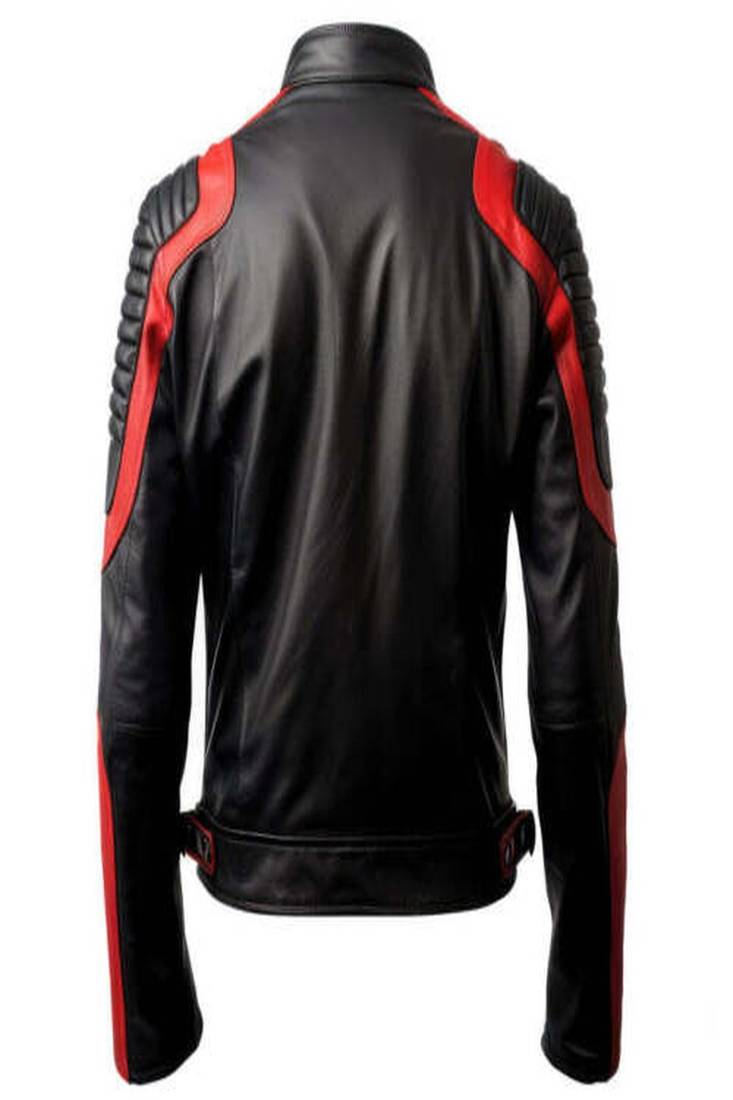 | Product Name | Men's Genuine Lambskin Leather Jacket – Café Racer Collar Style Red Pattern | |