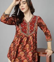 | Product Name | Maroon Floral Printed V Neck Pure Cotton Gathered Top With Three Quarter Sleeves | |