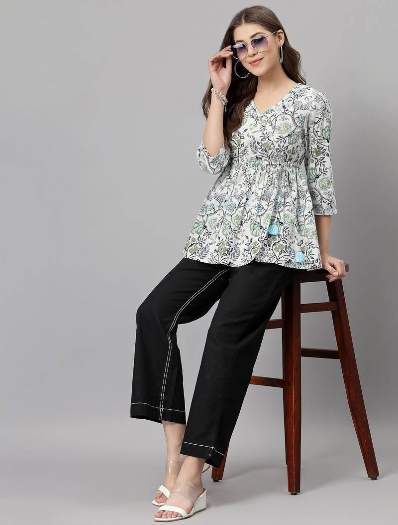 | Product Name | White And Black Ethnic Floral Printed Top | |