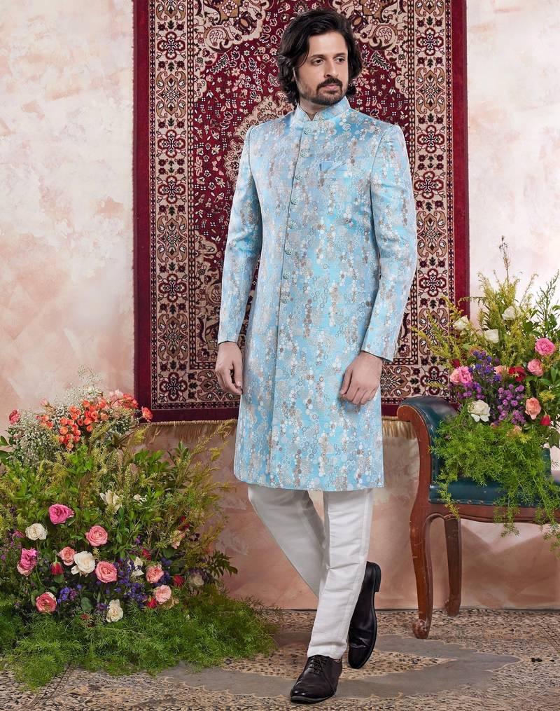 | Product Name | Blue Banarasi Jacquard Indo Western For Men | |