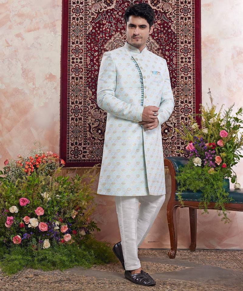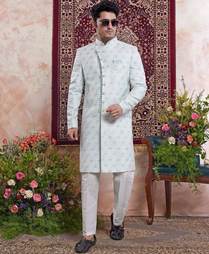 | Product Name | Blue Banarasi Jacquard Indo Western For Men | |