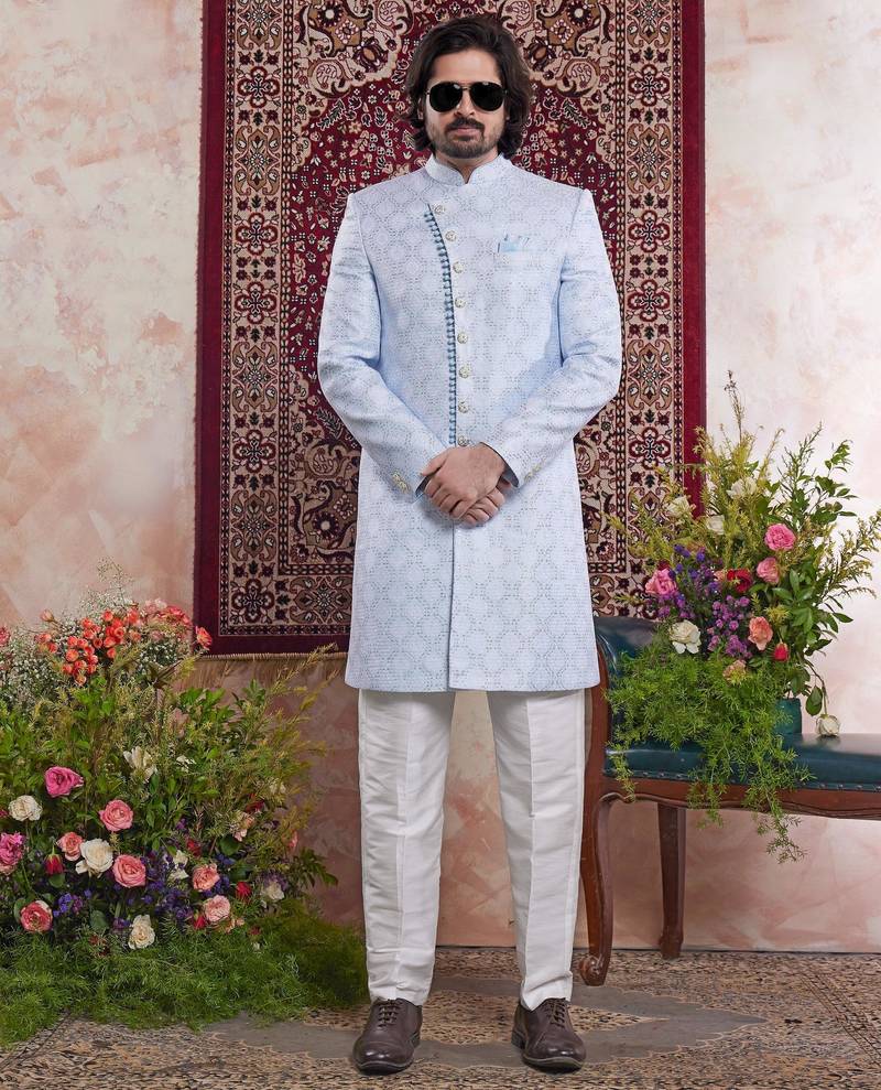 | Product Name | Blue Banarasi Jacquard Indo Western For Men | |