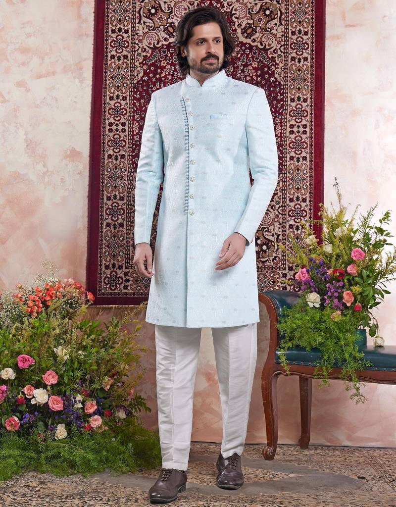 | Product Name | Blue Banarasi Jacquard Indo Western For Men | |