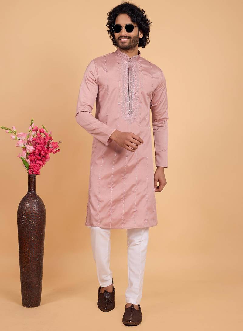Product Name Onion Pink Art Silk Straight Kurta For Men