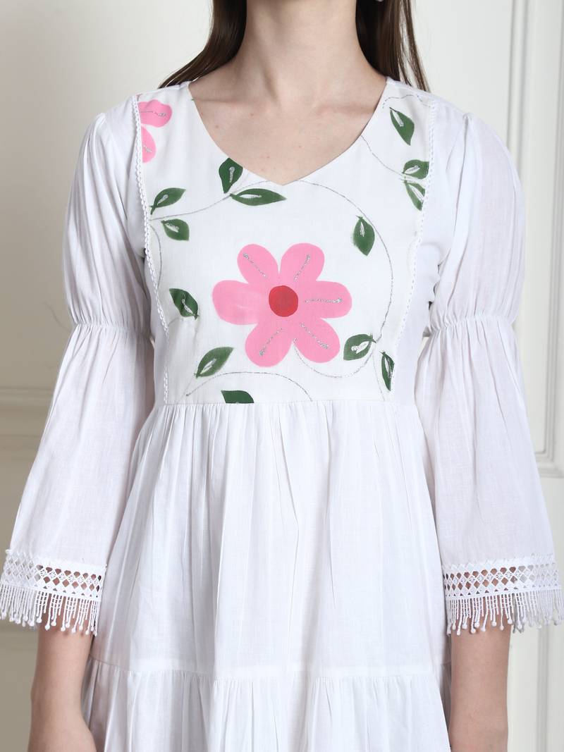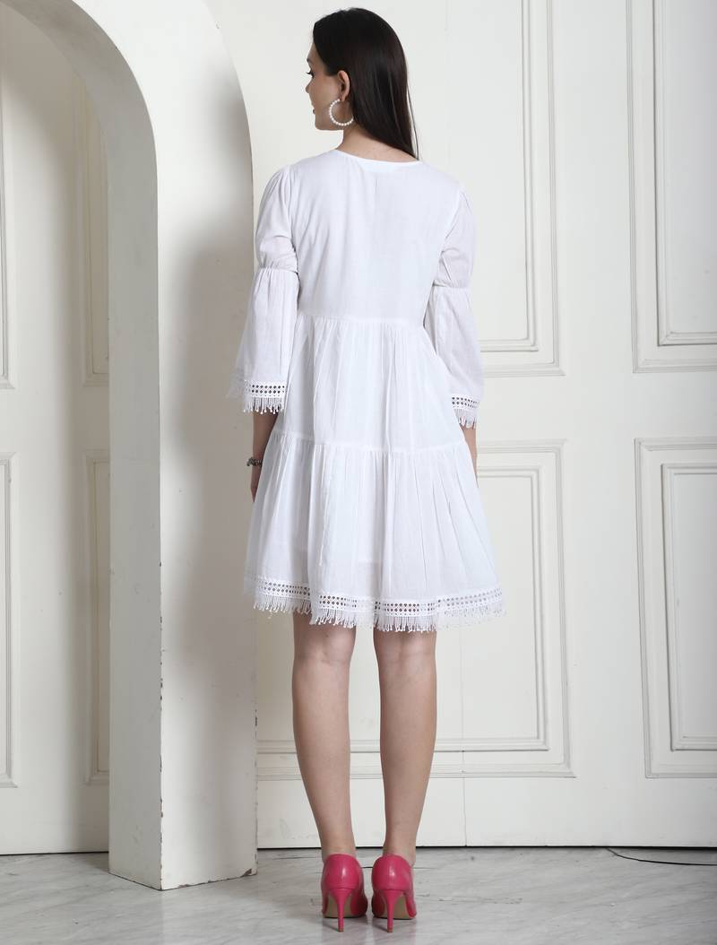 Product Description | This White Colour Western Dress Is The Fun Attire Of The Moment. Get It On And Style It With A Handbag And Earings For The Perfect Day Look. Its Casual Wear And Cute The Essentials For Your Wardrobe |