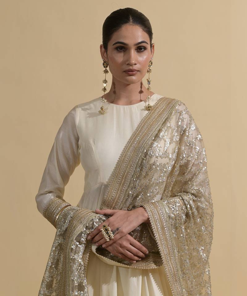 | Product Description | Ivory Sequins Work Chanderi Anarkali